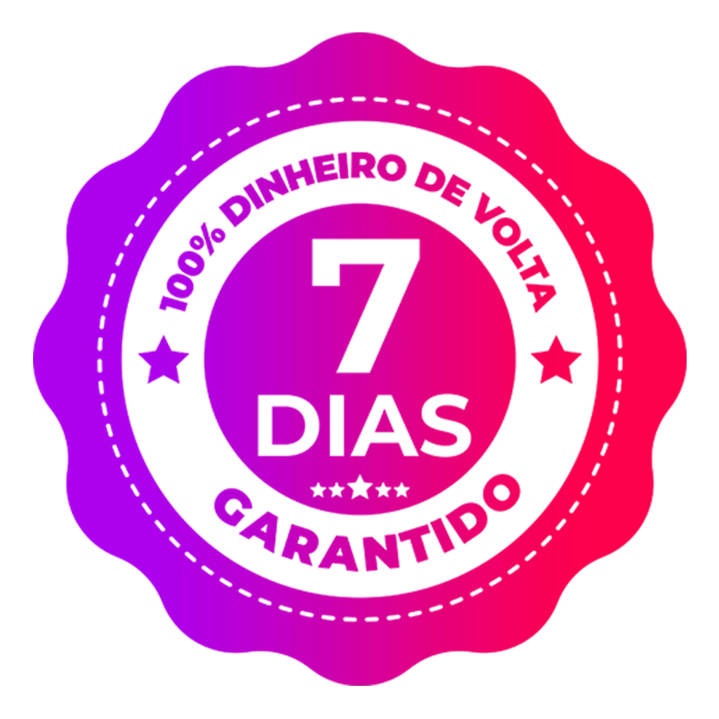 O código de defesa consumidor (Art. 49) garante 7 dias para solicitar reembolso em caso de insatisfação com o produto. Nós confiamos tanto em nossos estudos e pesquisas que lhe garantimos 15 dias de garantia incondicional!